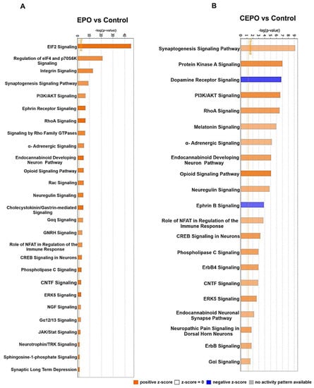 3.4. Signaling Pathways Upregulated with EPO and CEPO Treatment