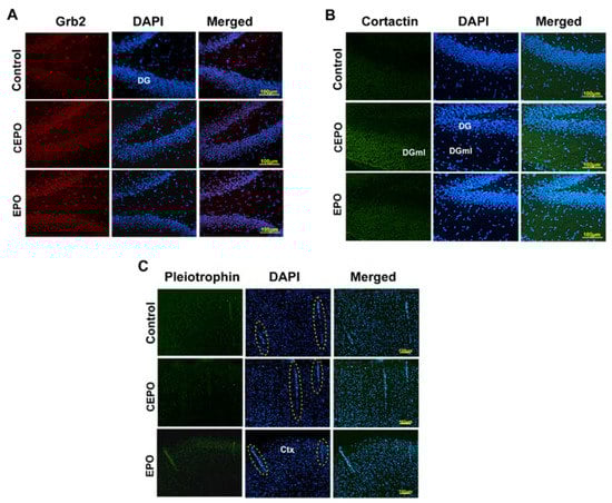 - Racz, B.; Weinberg, R.J. The subcellular organization of cortactin in hippocampus. J. Neurosci. 2004, 24, 10310–10317. [Google Scholar] [CrossRef] [PubMed][Green Version]