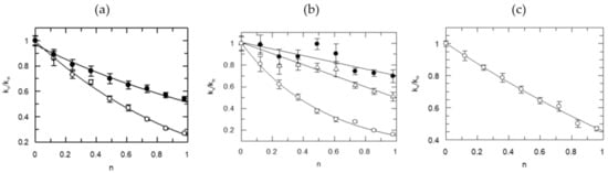 where Vn = velocity in a binary solvent; Vo = velocity in water; n = atom fraction of deuterium; RS = reactant state; ɸR = RS fractionation factor; ɸT = TS fractionation factor. (The TS sum is for TS fractionation factors and the RS sum is for RS fractionation factors.) The fractionation factors are in essence inverse equilibrium isotope effects, KD/KH, for exchange between a bulk-water site and a particular structural site of RS or TS [,,,,,]. The contributing isotope effects can be obtained from an appropriate least squares fitting procedure. The most common simplifications of this equation involve the assumption of a unit fractionation factor of most RSs and the assumption that one or two active-site units contribute. More complex models can also be derived from the general expression [,,,,,,,,,].