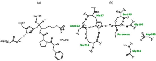 - Kovach, I.M. Stereochemistry and secondary reactions in the irreversible inhibition of serine hydrolases by organophos-phorus compounds. J. Phys. Org. Chem. 2004, 17, 602–614. [Google Scholar] [CrossRef]