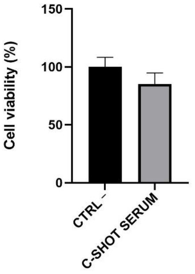 To conclude, our study represents a promising starting point for the evaluation of C-SHOT SERUM effectiveness using different analytical approaches based on monolayer and 3D cell models. Nevertheless, further in vivo investigations will be useful for a more suitable and careful evaluation of the biological serum activity to obtain a predictive index of the in vitro data respecting the in vivo real effect of the serum.