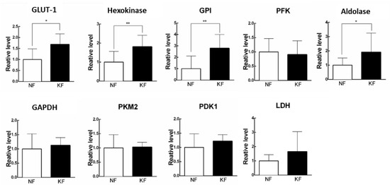 3.2. Glycolytic Enzymes Were Upregulated in KFs