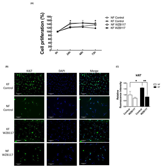 3.6. GLUT-1 Is Required for Proliferation of KFs