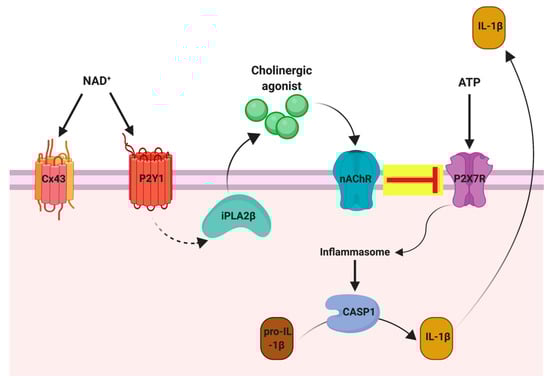 - Durnin, L.; Dai, Y.; Aiba, I.; Shuttleworth, C.W.; Yamboliev, I.A.; Mutafova-Yambolieva, V.N. Release, neuronal effects and removal of extracellular β-nicotinamide adenine dinucleotide (β-NAD+) in the rat brain. Eur. J. Neurosci. 2012, 35, 423–435. [Google Scholar] [CrossRef]