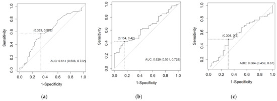 The ROC curves for CEA (a), CEACAM6 (b), and CA19-9 (c) according to their prognostic capabilities.