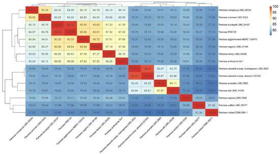 In our previous work, we identified FBS135 as a P. eucalypti strain based on its 16S RNA sequence. In the meantime, a taxonomic classification was performed using the Biolog® system to learn more about its phenotypic patterns, including 71 carbon source utilization assays and 23 chemical sensitivity assays (Supplementary Materials Figure S1). The Biolog® identification result showed that biochemical and physiological characteristics of FBS135 was closest to P. vagans followed by P. eucalypti (Figure S1). This is somewhat different from the taxonomic result according to 16S RNAs, although it was reasonable given the close relationship between P. vagans and P. eucalypti.
