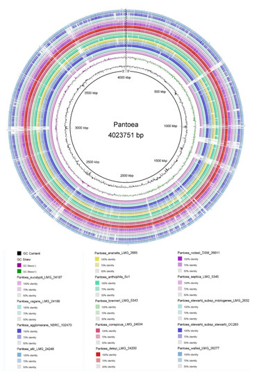 - Tambong, J.T. Taxogenomics and Systematics of the Genus Pantoea. Front. Microbiol. 2019, 10, 13. [Google Scholar] [CrossRef]