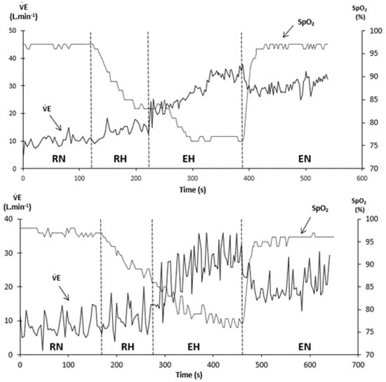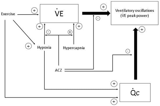- Hermand, E.; Lhuissier, F.J.; Larribaut, J.; Pichon, A.; Richalet, J.-P. Ventilatory Oscillations at Exercise: Effects of Hyperoxia, Hypercapnia, and Acetazolamide. Physiol. Rep. 2015, 3, e12446. [Google Scholar] [CrossRef] [PubMed][Green Version]