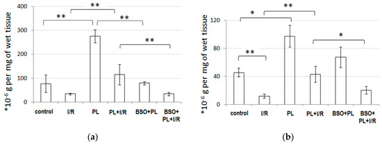 3.4. PAG + L-Cysteine Pretreatment Prevented I/R-Induced Oxidative and Nitrosative Stress