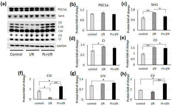 - Zhou, Y.; Wang, S.; Li, Y.; Yu, S.; Zhao, Y. SIRT1/PGC-1α Signaling Promotes Mitochondrial Functional Recovery and Reduces Apoptosis after Intracerebral Hemorrhage in Rats. Front. Mol. Neurosci. 2018, 10, 443. [Google Scholar] [CrossRef]