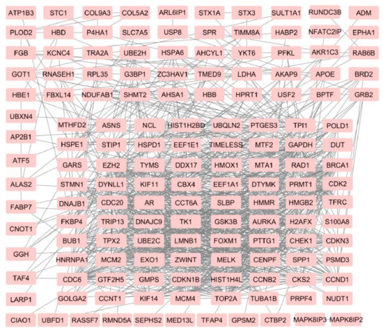 2.3. Visualization of Metastasis Genes Networks and Identification of the Hub Genes