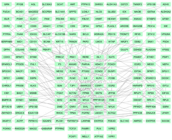 - Shannon, P.; Markiel, A.; Ozier, O.; Baliga, N.S.; Wang, J.T.; Ramage, D.; Amin, N.; Schwikowski, B.; Ideker, T. Cytoscape: A software Environment for integrated models of biomolecular interaction networks. Genome Res. 2003, 13, 2498–2504. [Google Scholar] [CrossRef] [PubMed]