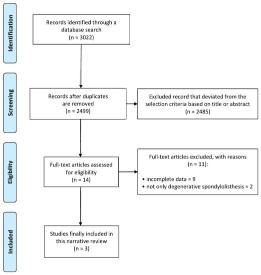 This meta-analysis was conducted in accordance with the Preferred Reporting Items for Systematic Reviews and Meta-Analysis guidelines [37]. We systematically searched for relevant articles published up to 8 December 2020 in the PubMed, Embase, the Cochrane Library, and SCOPUS databases. The following keywords were used in the search: “oblique OR transforaminal”, “lumbar spine”, and “fusion”. Filters were used to select studies with human participants.