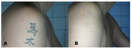 - Zhitny, V.P.; Iftekhar, N. Tattoo Removal: A Practice from Ancient Times. Dermatology 2020, 236, 390–392. [Google Scholar] [CrossRef] [PubMed]