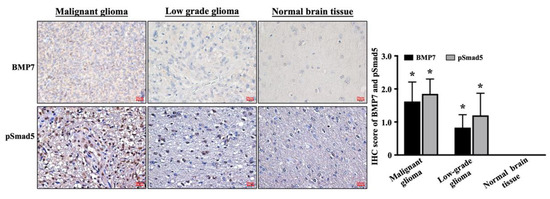 3.1. A Higher BMP7-pSmad5 Level in Human Malignant Glioma