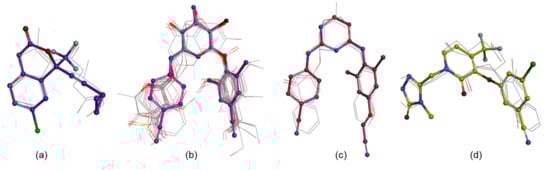- Hawkins, P.C.D.; Skillman, A.G.; Warren, G.L.; Ellingson, B.A.; Stahl, M.T. Conformer generation with OMEGA: Algorithm and validation using high quality structures from the Protein Databank and Cambridge structural database. J. Chem. Inf. Model. 2010, 50, 572–584. [Google Scholar] [CrossRef]