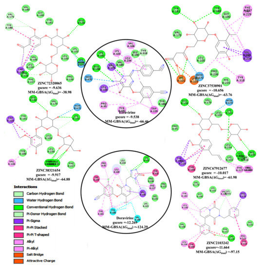 - Wang, W.; Tian, Y.; Wan, Y.; Gu, S.; Ju, X.; Luo, X.; Liu, G. In silico studies of diarylpyridine derivatives as novel HIV-1 NNRTIs using docking-based 3D-QSAR, molecular dynamics, and pharmacophore modeling approaches. RSC Adv. 2018, 8, 40529–40543. [Google Scholar] [CrossRef]