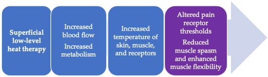 Freiwald, J.; Magni, A.; Fanlo-Mazas, P.; Paulino, E.; Sequeira de Medeiros, L.; Moretti, B.; Schleip, R.; Solarino, G. A Role for Superficial Heat Therapy in the Management of Non-Specific, Mild-to-Moderate Low Back Pain in Current Clinical Practice: A Narrative Review. Life 2021, 11, 780. https://doi.org/10.3390/life11080780