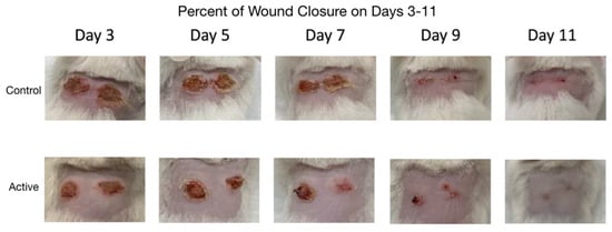 Photographs comparing the control and active cFIRB mouse’s puncher wound were obtained at the time of all measurements (