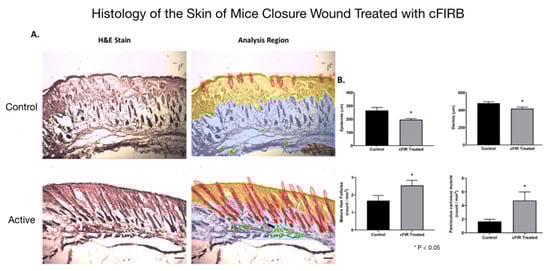 Figure 3. Histology (hematoxylin-eosin (H&E) staining) of the skin of mice closure wound treated with cFIRB is demonstrated in