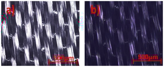 Optical microscope images for the uncoated and coated silk textile surfaces are shown in Figure 4.