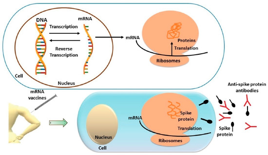 The new generation and the new concept of mRNA vaccines against SARS-CoV-2 by-pass the transcription of DNA to mRNA in the nucleus. Instead, the mRNA is delivered directly to the cytoplasm where they promote a transient expression of S protein in the ribosomes lasting a few days (Figure 1). The mRNA vaccine does not encode the entire SARS-CoV-2 virus but only the S protein. The translation of the exogenous antigen is controlled by the lifetime of encoding mRNA, which in turn depends on the cellular degradation pathways [32].