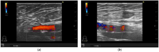Intima-media thickness (IMT) is an indicator of early atherosclerosis and can easily be measured by ultrasound examination of the large arteries: common carotid, brachial, and common femoral [8]. Several studies have demonstrated increased carotid IMT (cIMT) among psoriatic patients compared to non-psoriatic healthy controls [9,10]. Femoral IMT (fIMT) is a more informative predictor of subclinical atherosclerosis than cIMT [11,12]. Existing research has found conflicting results about the effect of systemic antipsoriatic therapies on cIMT. There are studies where moderation of psoriatic inflammation with systemic antipsoriatic treatments can ameliorate IMT values. In our previous study, we observed a significant improvement of the carotid and brachial IMT (bIMT) values among moderate-to-severe psoriatic patients after 6 months of TNF inhibitor treatment [9,13]. In contrast, other studies found no significant improvement in cIMT values by using ustekinumab, secukinumab, ixekizumab, and adalimumab therapies [14,15].