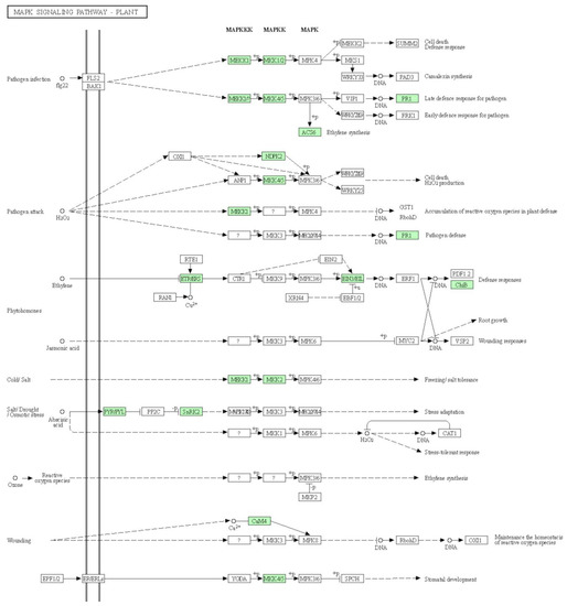- Sinha, A.K.; Jaggi, M.; Raghuram, B.; Tuteja, N. Mitogen-activated protein kinase signaling in plants under abiotic stress. Plant Signal Behav. 2011, 6, 196–203. [Google Scholar] [CrossRef]