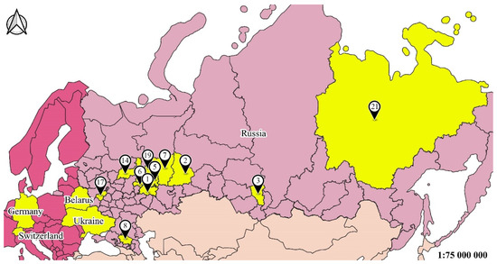 The sampling area included vast territory in different provinces of Russia, including Siberia, and several sites in four European countries (Table 1, Figure 1).