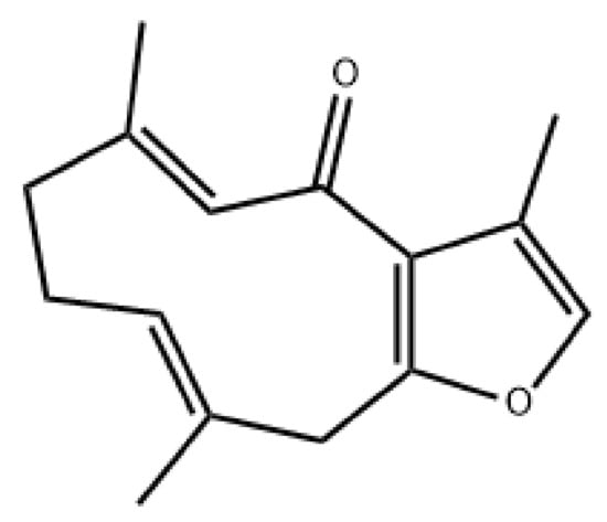 - Messina, F.; Gigliarelli, G.; Palmier, A.; Marcotullio, M.C. Furanodienone: An Emerging Bioactive Furanosesquiterpenoid. Curr. Org. Chem. 2017, 21, 305–310. [Google Scholar] [CrossRef][Green Version]
