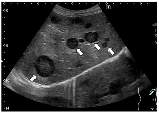 - Soudack, M.; Shechter, A.; Malkin, L.; Hayek, T.; Gaitini, D. Inflammatory pseudotumor of the liver: Sonographic and computed tomographic features with complete regression. J. Ultrasound Med. 2000, 19, 501–504. [Google Scholar] [CrossRef][Green Version]