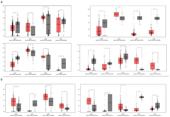 - Tang, Z.; Kang, B.; Li, C.; Chen, T.; Zhang, Z. GEPIA2: An enhanced web server for large-scale expression profiling and interactive analysis. Nucleic Acids Res. 2019, 47, W556–W560. [Google Scholar] [CrossRef] [Green Version]