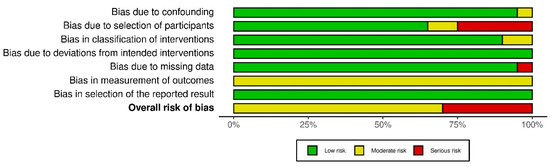 Summary of the risk of bias assessment of the included observational studies according to the ROBINS-I.