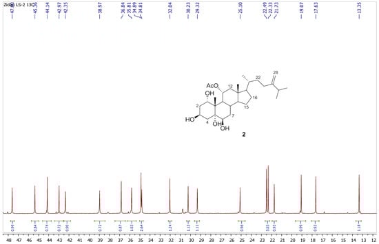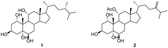 - Mahmoud, A.H.; Zidan, S.A.; Samy, M.N.; Alian, A.; Fouad, M.A.; Kamel, M.S.; Matsunami, K. Phytochemical and biological investigation of Litophyton arboreum. J. Pharmacogn. Phytochem. 2022, 11, 12–15. [Google Scholar] [CrossRef]