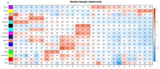 - Langfelder, P.; Horvath, S. WGCNA: An R Package for Weighted Correlation Network Analysis. BMC Bioinform. 2008, 9, 1–13. [Google Scholar] [CrossRef]