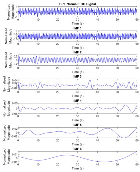 The EMD results (IMF1 to 6) of preprocessed ECG signals of normal episode.