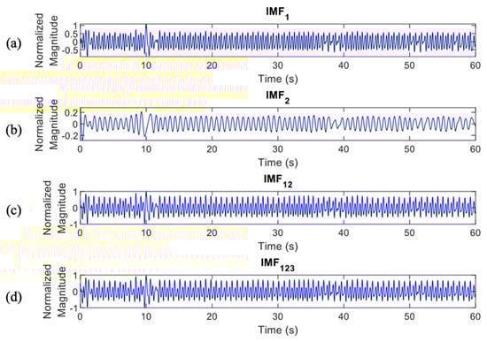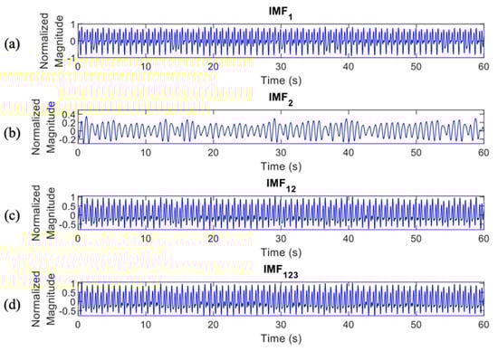 IMF features of apnea episodes which were processed to the classification stage, (a), (b), (c), and (d).