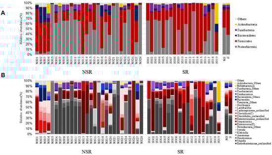 3.2. Bile Microbiome Compositions in SR and NSR Groups