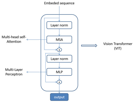 A vision transformer contains a multi-head self-attention block and a multi-layer perceptron block. Attention mechanism [