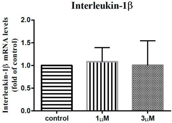 The mRNA expression levels of interleukin-1β of the subacromial bursa cells treated with different concentrations of leptin.