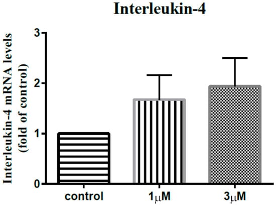 The mRNA expression levels of interleukin-4 of the subacromial bursa cells treated with different concentrations of leptin.