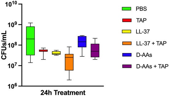 - Kang, J.; Dietz, M.J.; Li, B. Antimicrobial peptide LL-37 is bactericidal against Staphylococcus aureus biofilms. PLoS ONE 2019, 14, e0216676. [Google Scholar] [CrossRef]