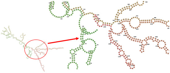 - Gruber, A.; Lorenz, R.; Bernhart, S.H.F.; Neuböck, R.; Hofacker, I.L. The Vienna RNA Websuite. Nucleic Acids Res. 2008, 36, W70–W74. [Google Scholar] [CrossRef]