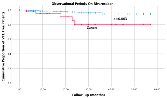 Bernardi E, Camporese G, Bortoluzzi C, Noventa F, Ceccato D, Tonello C, Vohong S, Campello E, Simion C, Imbalzano E, et al. Safety and Efficacy of Rivaroxaban as Extended-Phase Anticoagulation in Patients with Cancer and Venous Thromboembolism: A Preliminary Data Analysis from the Mac Project. Life. 2022; 12(11):1725. https://doi.org/10.3390/life12111725
