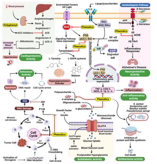 Mechanism of action underlying the therapeutic activities of phenolics in different diseases, adapted from Ref. [52].