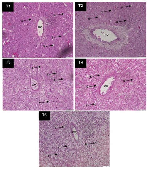 | CHOL (g/dL) | 12.26 ± 0.14 a | 7.22 ± 0.32 b | 8.22 ± 0.32 c | 9.43 ± 0.42 d | 9.86 ± 0.23 d |