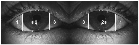 The measurement of the invasive tear film breakdown time (BUT) is defined as the time between a complete blink and the appearance of the first tear film rupture. The average value is 10 s or more [14,15,16].