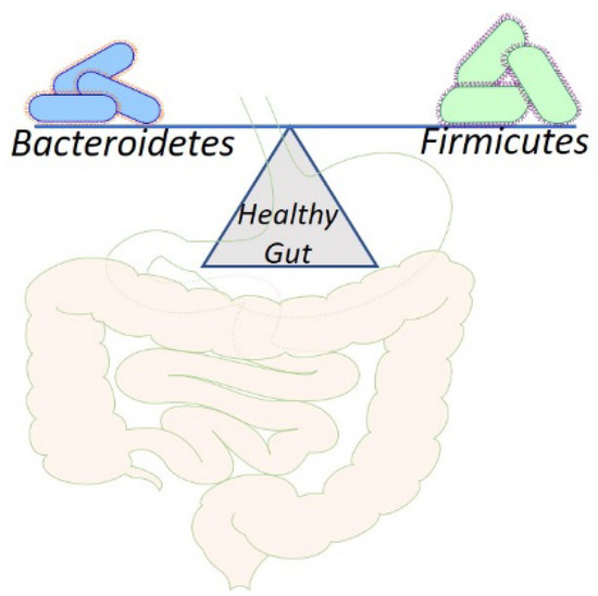 Microbiota and the healthy gut. The figure illustrates how Firmicutes and Bacteroidetes abundance helps in maintaining the balance between healthy gut and dysbiosis.