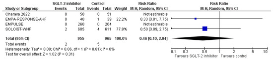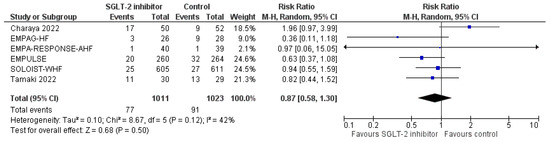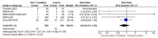 Similarly, none of the included studies reported any data on the need for LV assist device (LVAD) implantation after initiation of an SGLT-2 inhibitor versus control in the setting of acute HF.