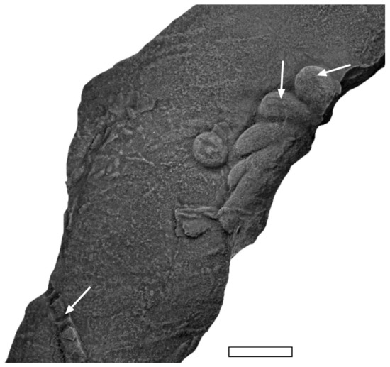 - Dunn, F.S.; Liu, A.G.; Grazhdankin, D.V.; Vixseboxse, P.; Flannery-Sutherland, J.; Green, E.; Harris, S.; Wilby, P.R.; Donoghue, P.C.J. The developmental biology of Charnia and the eumetazoan affinity of the Ediacaran rangeomorphs. Sci. Adv. 2021, 7, eabe0291. [Google Scholar] [CrossRef]